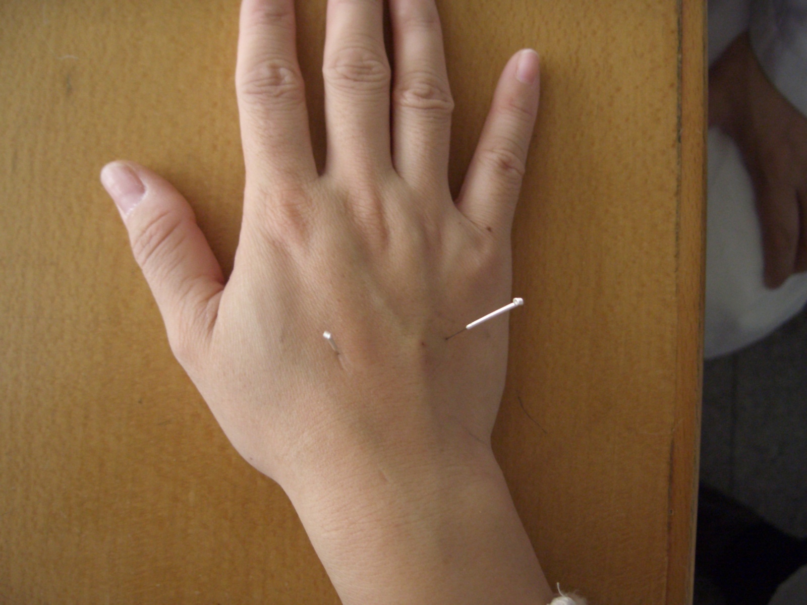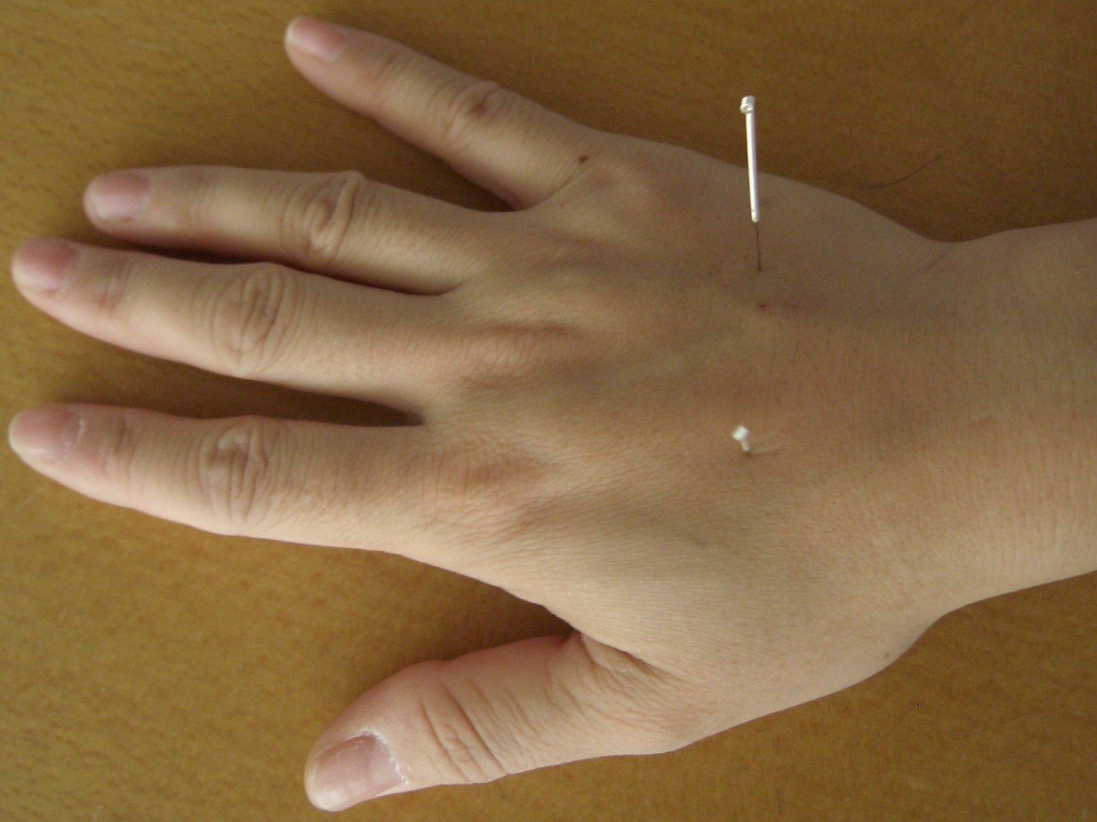 beim Einstich einer Akupunkturnadel ist vergleichsweise viel schwächer als derjenige, wenn der Arzt eine Spritze gibt.