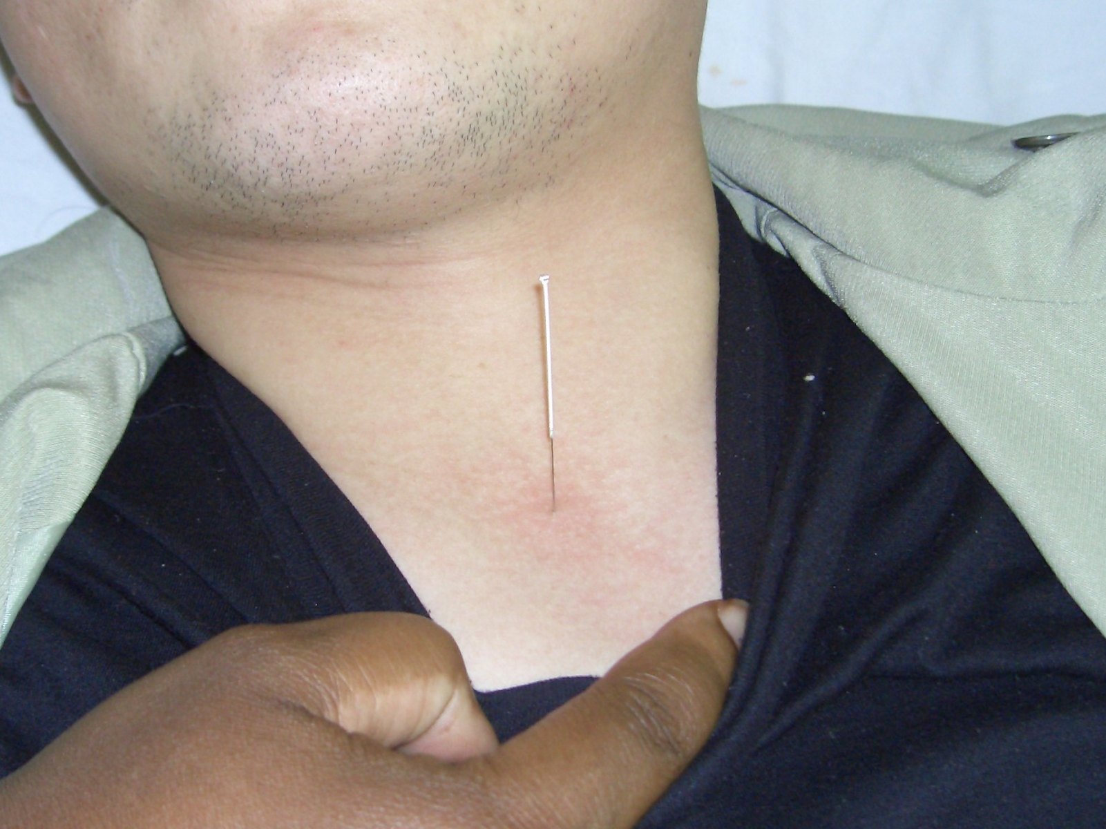 Das richtige Auswählen und Lokalisieren der entsprechenden Akupunkturpunkte ist für eine erfolgreiche Therapie noch nicht ausreichend. Erst die Kenntnis und Anwendung der notwendigen Nadelmanipulationstechniken bzw. spezieller Techniken der zusätzlichen Behandlungsmethoden wie Moxibustion, Schröpfen oder Mikroaderlaß, gewährleisten eine fachgerechte Therapie. Man kam Akupunkturpunkte auch nur durch Wärme (Moxibustion) oder auch durch Druck mit dem Finger oder mit einem Stift (Akupressur) reizen.